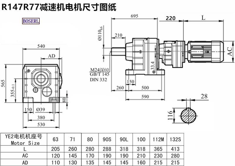 | 齒輪減速電機 | R149R79YVP63M4 | R149R79DVE63M4 | R149R79DM112M4 |